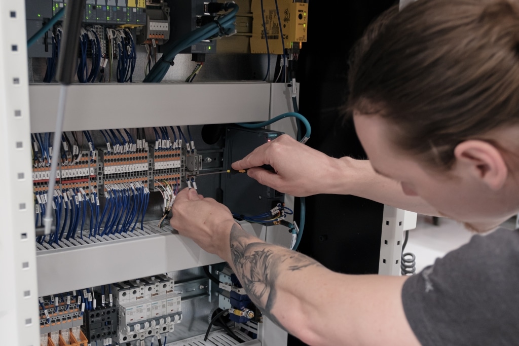 – Man måste vara flexibel och mångsidig. Ena stunden sitter man med datorn i PLC-programmet, nästa står man med multimeter i handen, säger han.